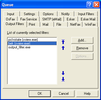 Order of execution of the filters can be changed using up and down arrow buttons.