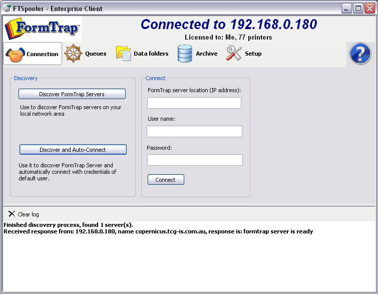 files. Use this after configuring FTSpooler via Setup. Use this window