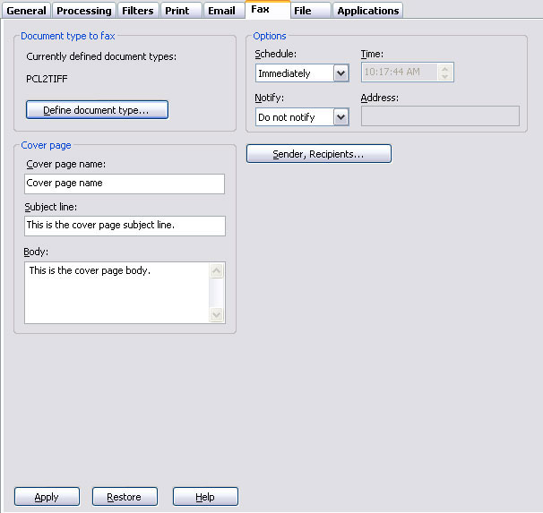 to specify the document type. Fax requires TIFF for faxing so select