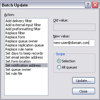 action to be taken on selected or all queues. There are three types of