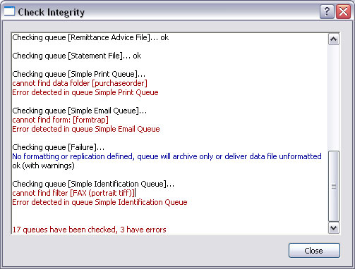 The Check Integrity tool verifies
