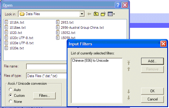 Input Filter “Chinese (936)“ applied, then saved back into a folder as