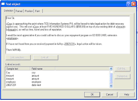 Letter Type – indicates the text required and variables to be inserted