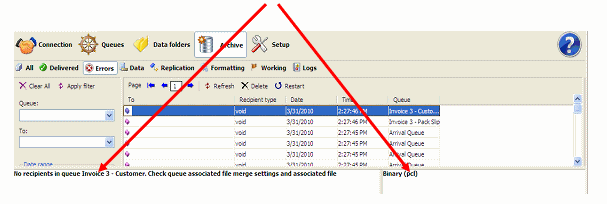 Most errors from the Spooler itself are self explanatory, for example, this one, in the left-hand panel of Archive, Errors: