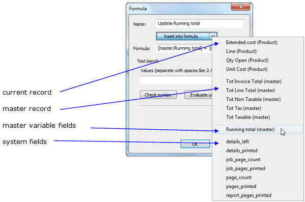 Formula are additional data defined within records. Formula are derived during XML processing.