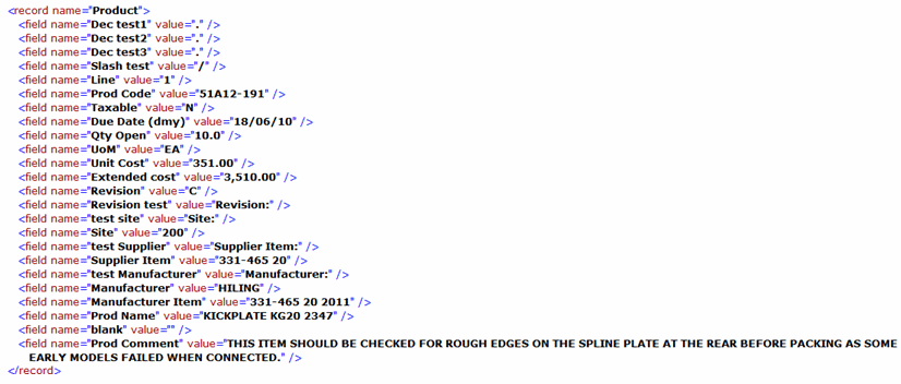 and here is the Product record with all fields defined. Note this