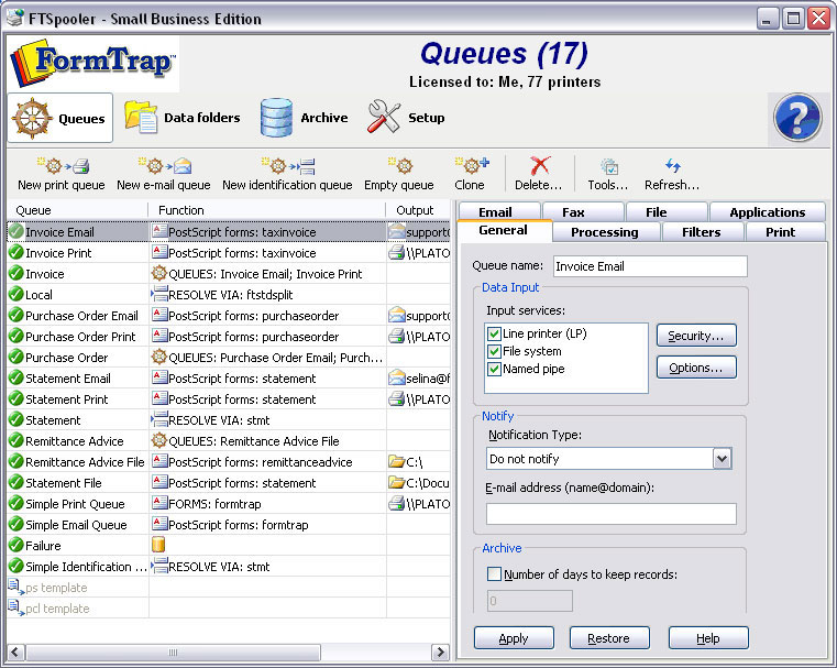 files. Use this after configuring FTSpooler via Setup. Use this window